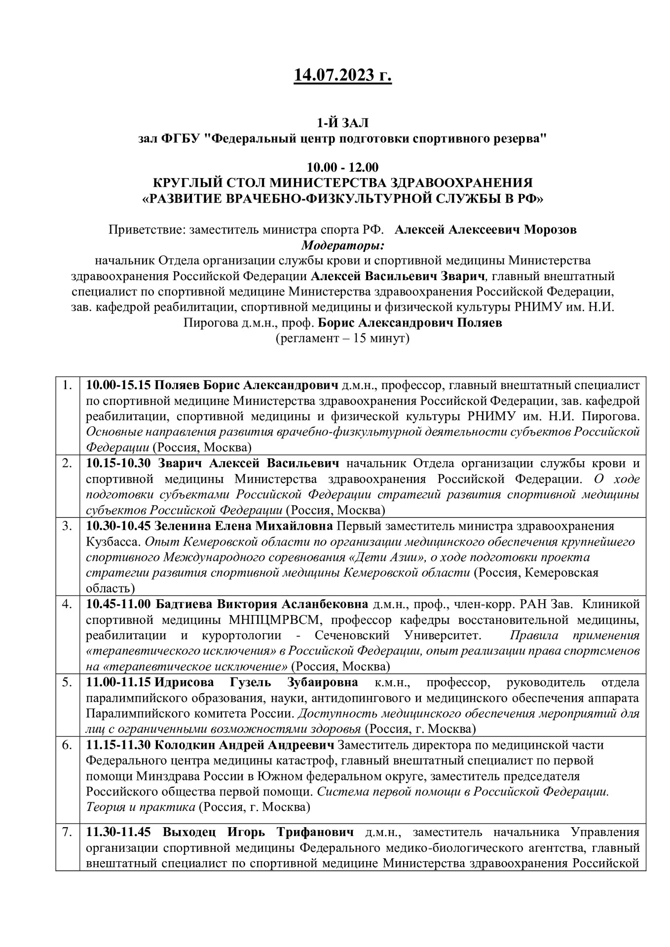 ЮНОШЕСКОГО СПОРТА И СПОРТИВНОЙ МЕДИЦИНЫ
